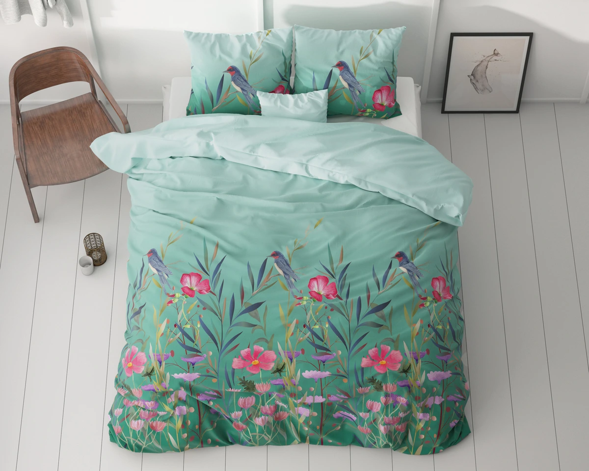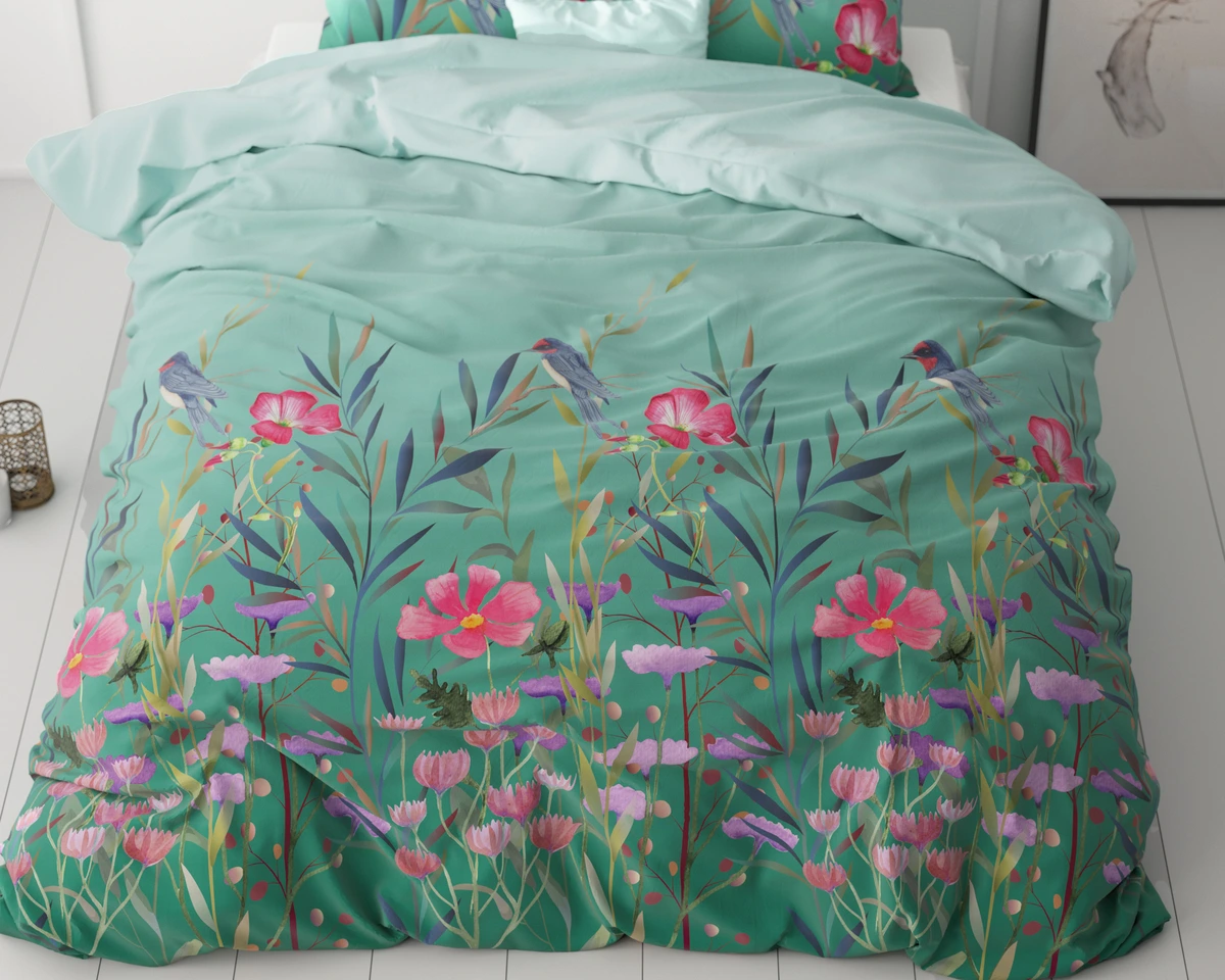140x200/220 FLOWER & BIRDS turkus kpl pościeli mikrofibra