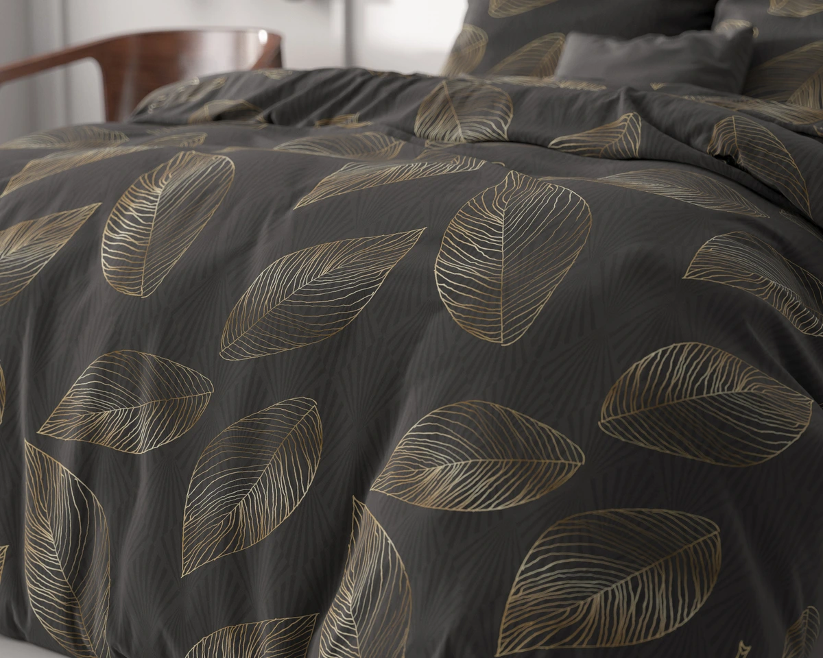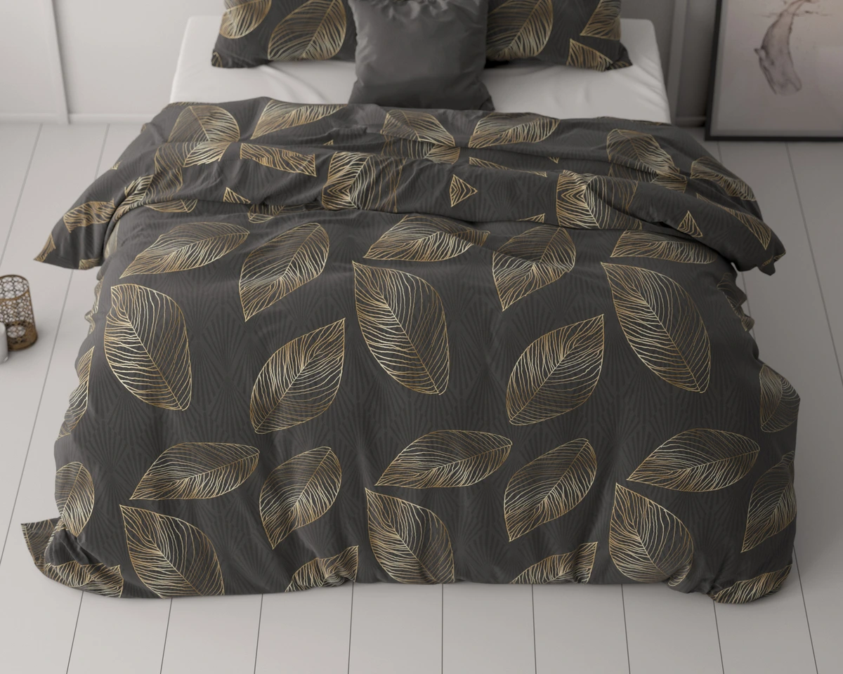 140x200/220 GOLDEN LEAF antracyt kpl pościeli mikrofibra