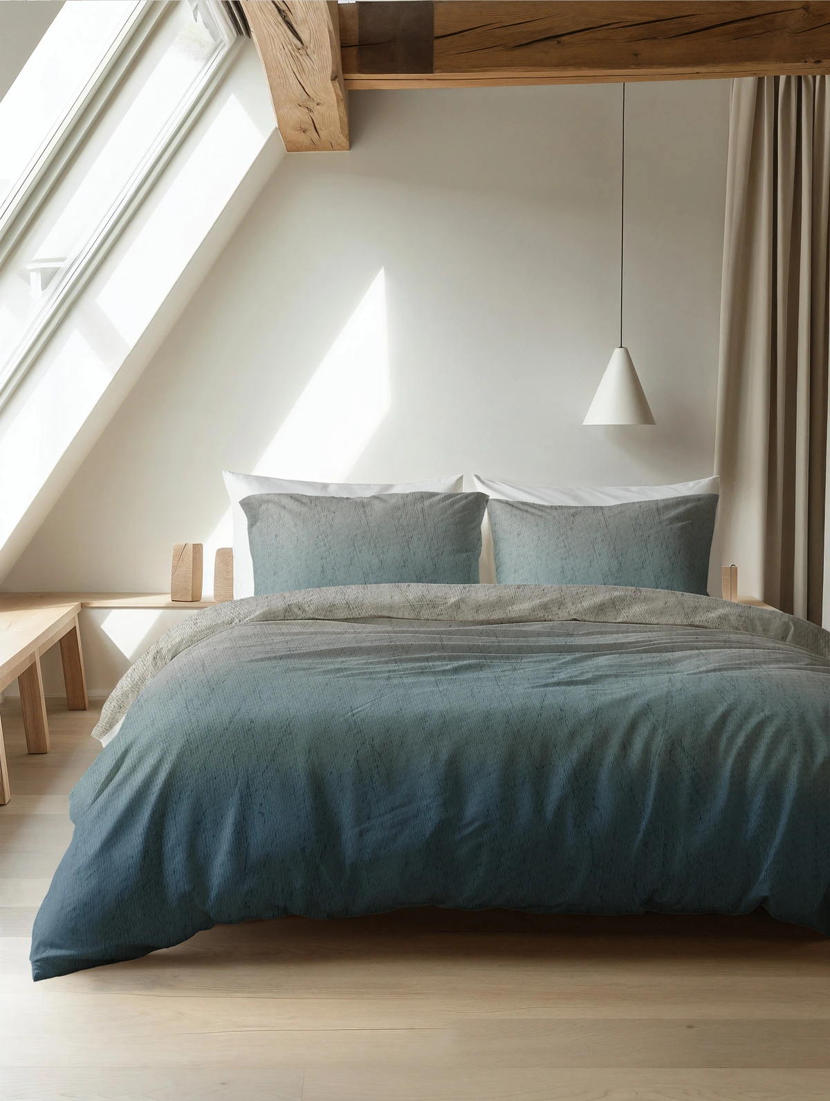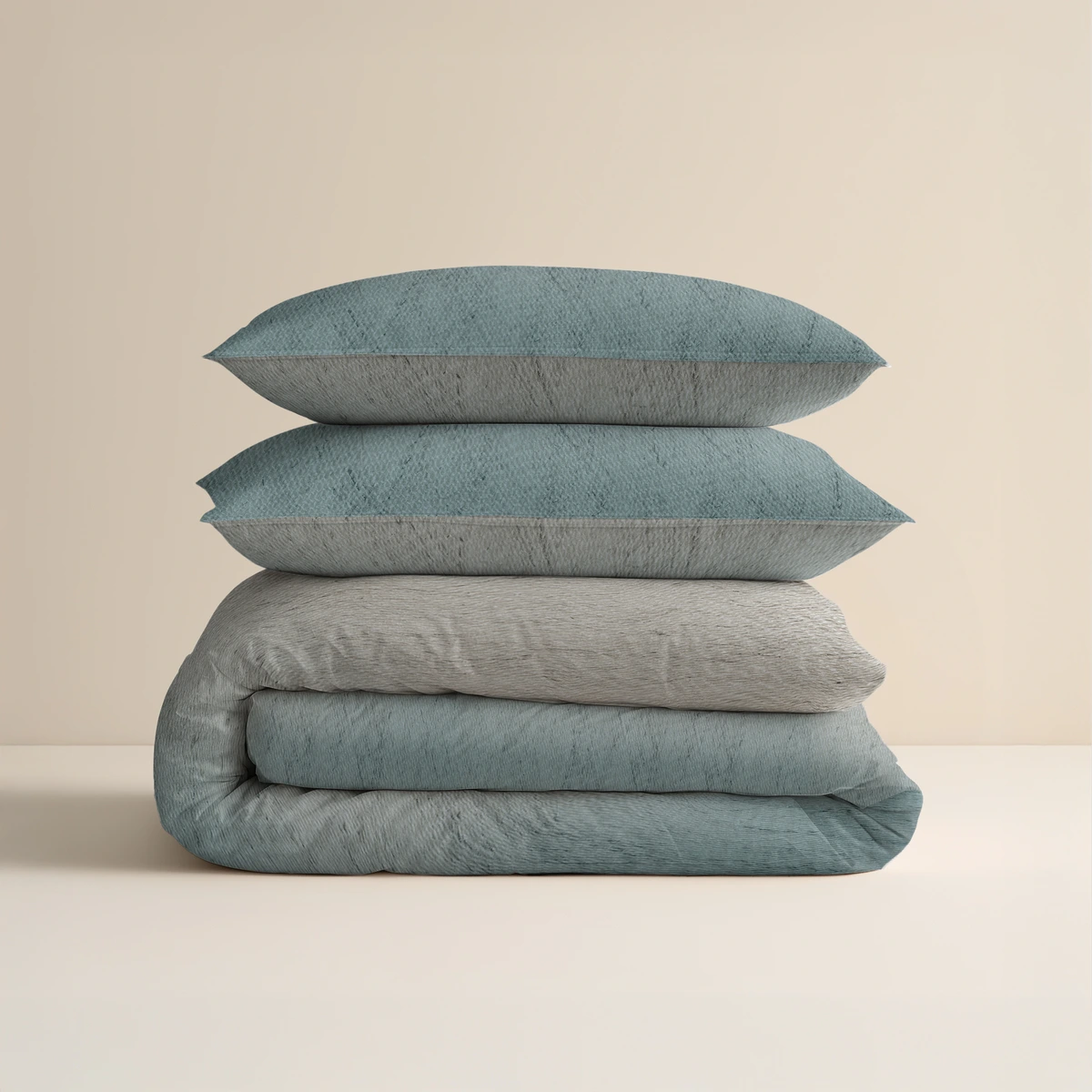 140x200/220 GRADIA beż/niebieski flanela mix kpl pościeli