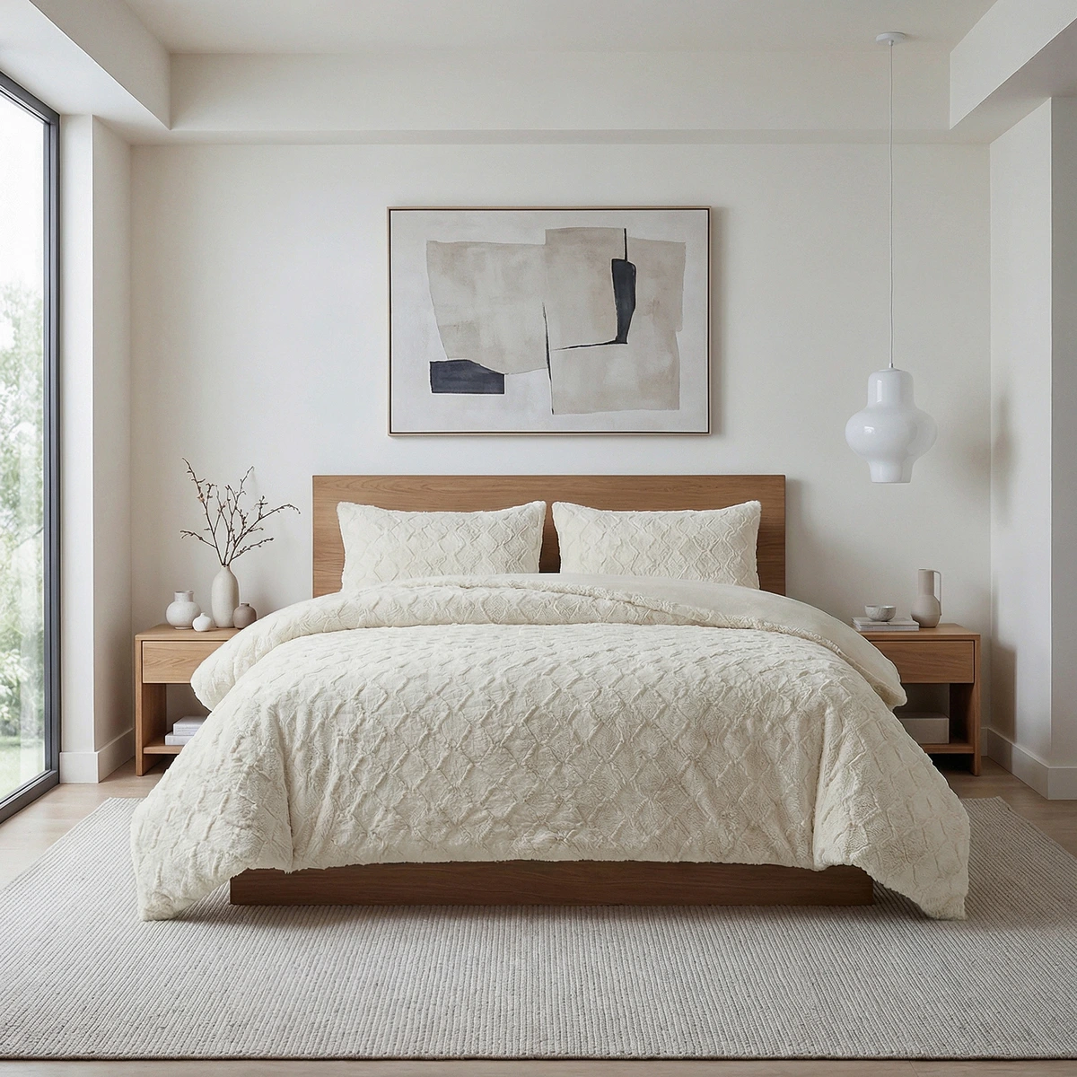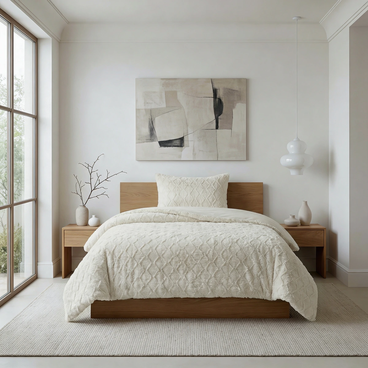 Wyrazista struktura teddy oraz staranne wykończenie sprawiają, że pościel Sleeptime Teddy sztuczne futerko Syon nadaje sypialni elegancki i modny charakter. Chłodny minimalizm i ciepły efekt wizualny tworzą harmonijną całość, która doskonale pasuje zarówno do wnętrz nowoczesnych, jak i klasycznych. To pościel, która nie tylko poprawia jakość snu, ale także stanowi element dekoracyjny sypialni.