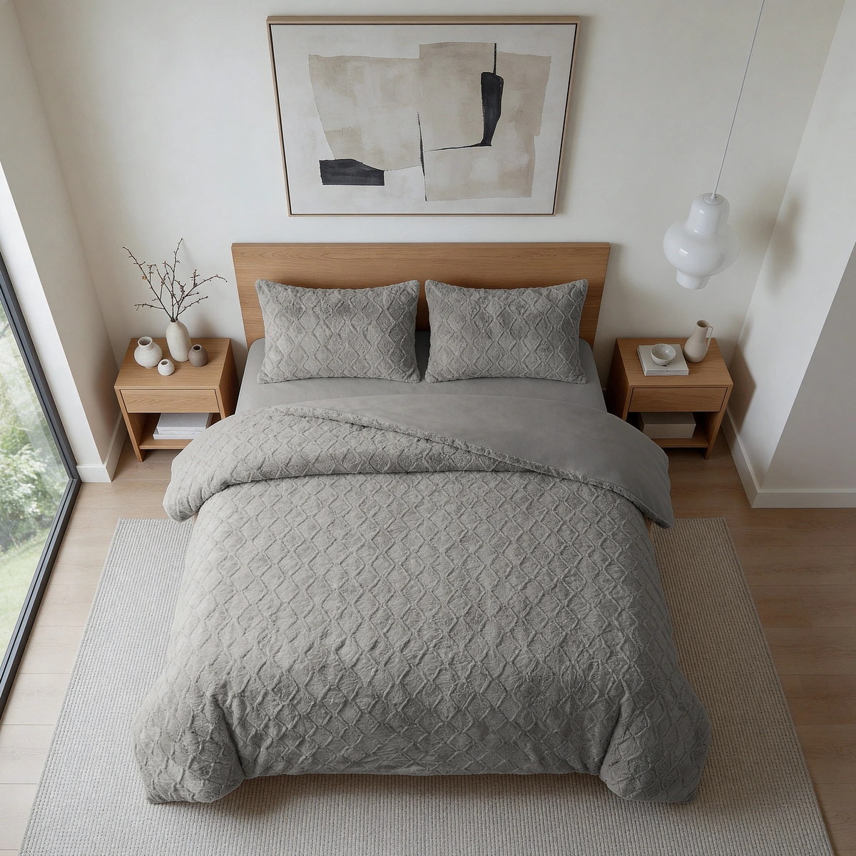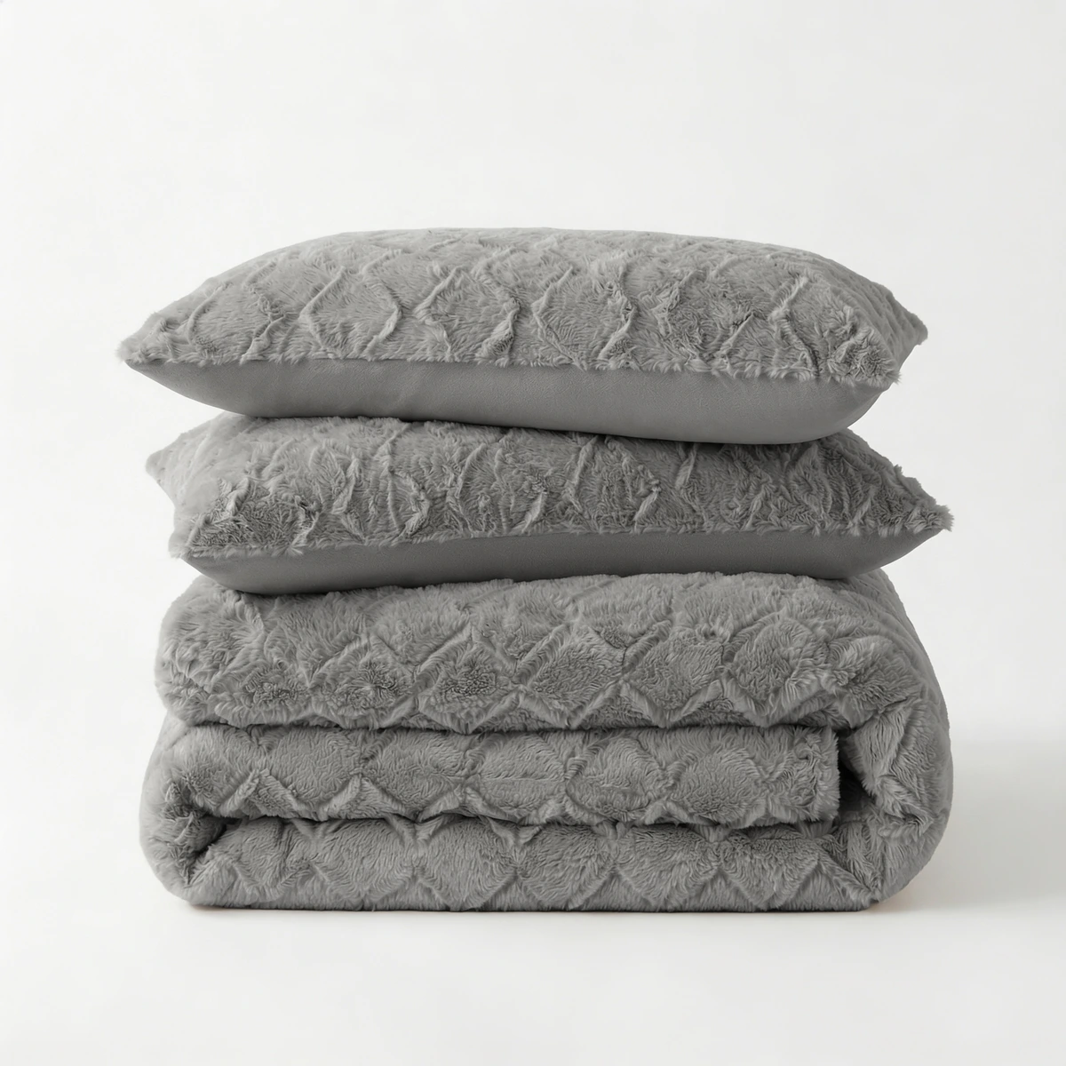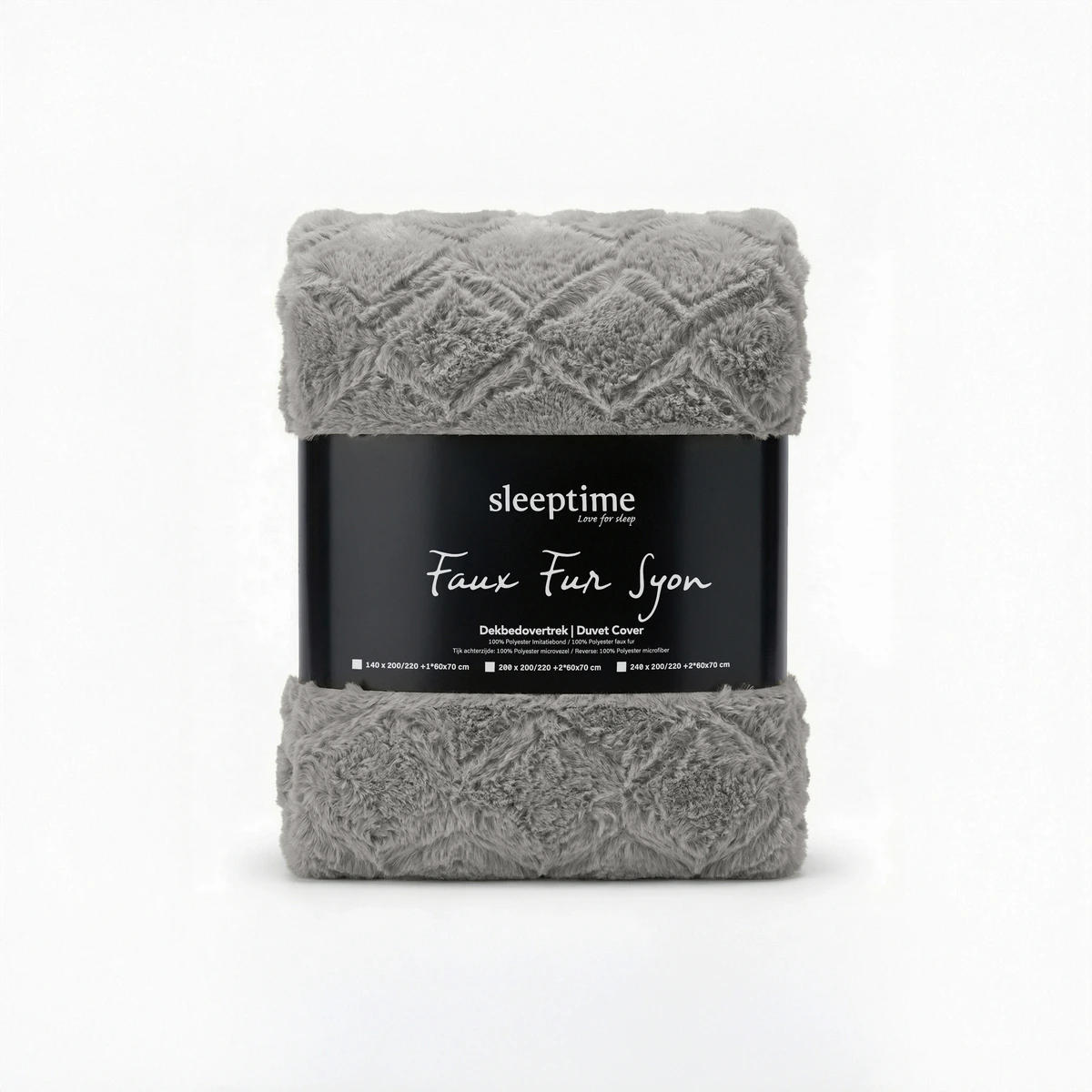 140x200/220 SYON teddy sztuczne futerko szare kpl pościeli