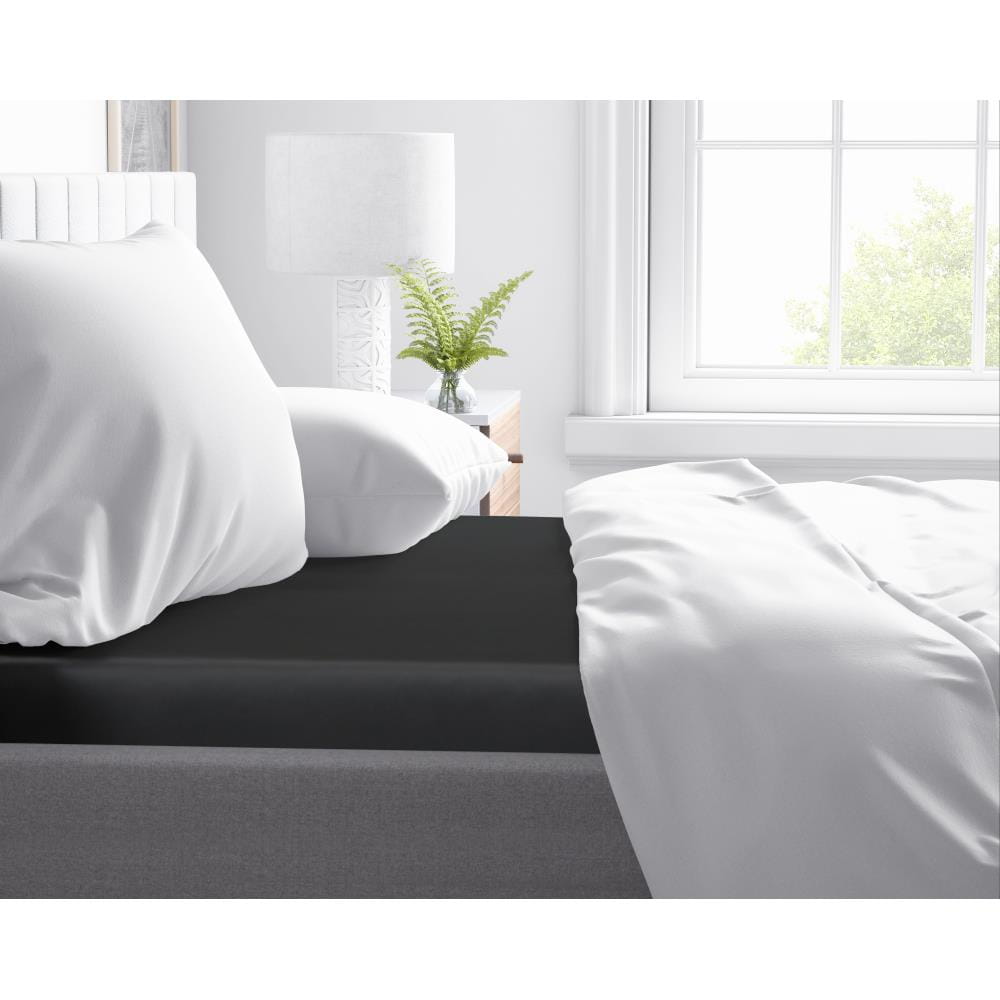 180x220cm prześcieradło na gumce satyna bawełniana czarny