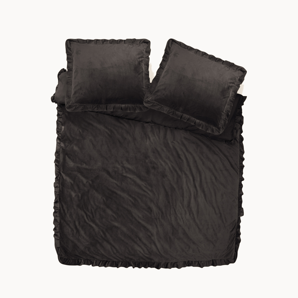 240x220 AKSAMITNE FALBANY k. czarny kpl pościeli