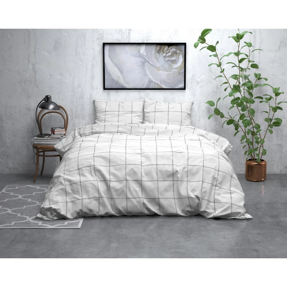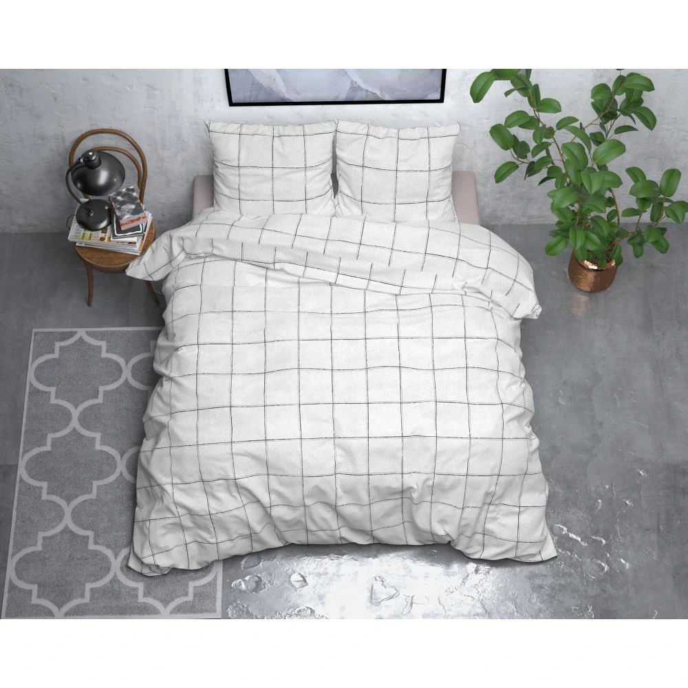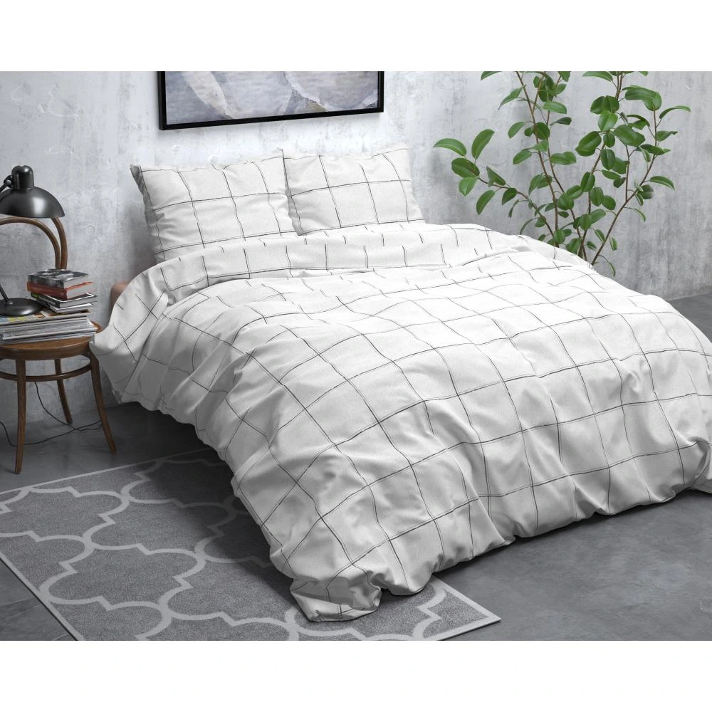 240x220 DEEP CHECK biały kpl pościeli flanela