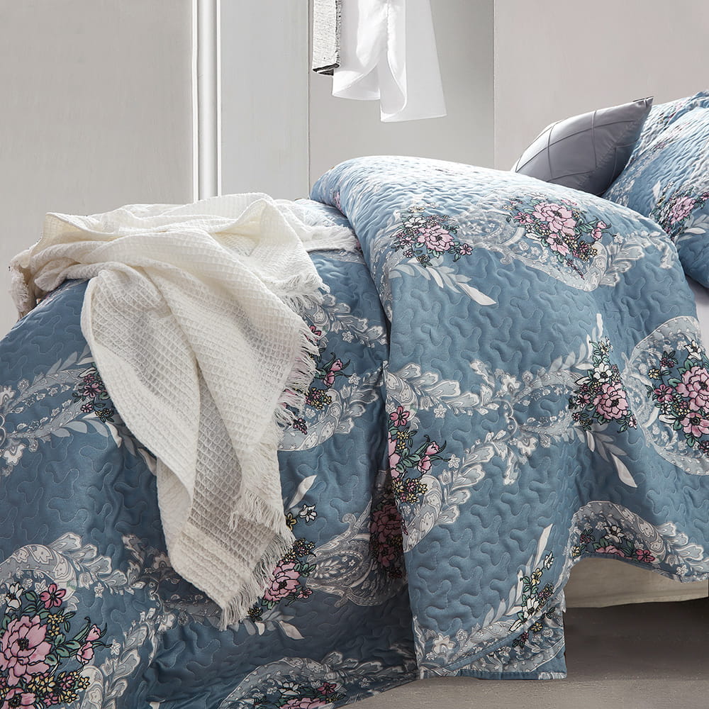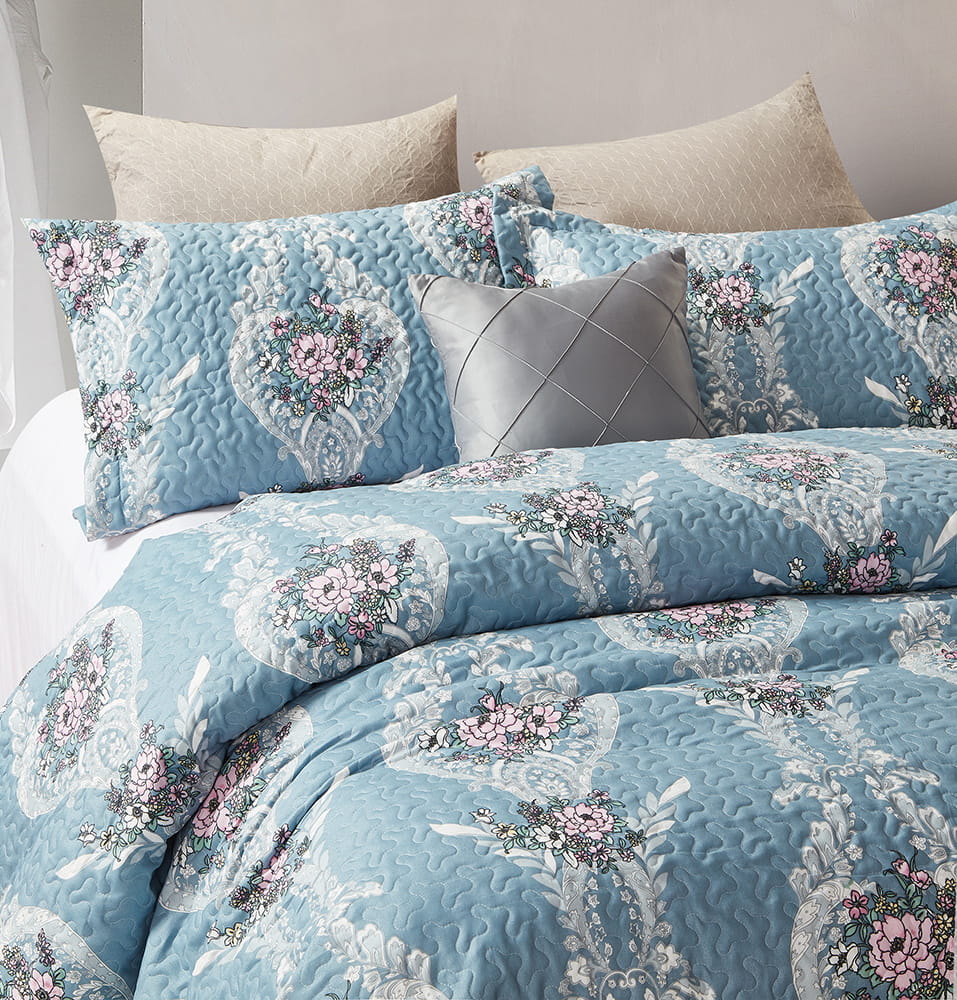 Elegancki komplet narzuty na łóżko o wymiarach 180x250cm oraz 1 poszewki na poduszkę 60x70cm.