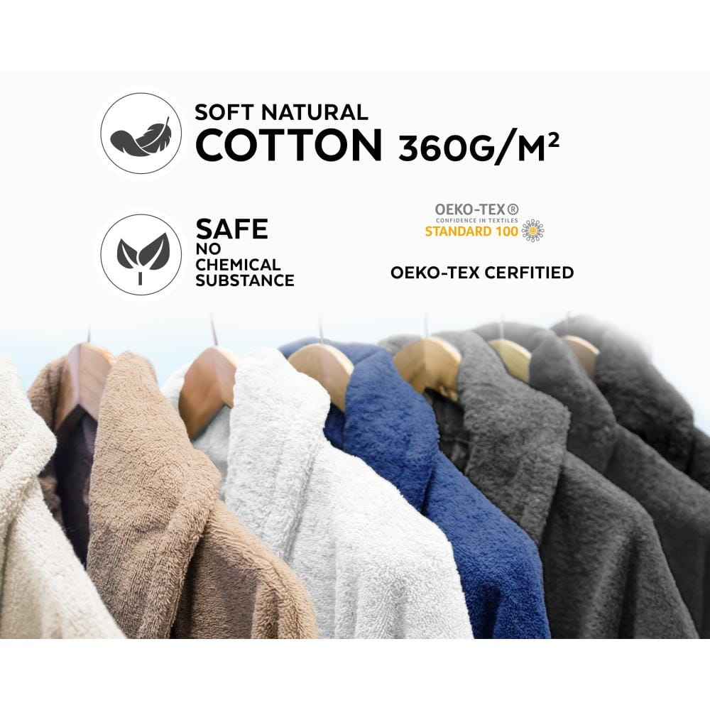 Szlafrok idelnie otuli Twoje ciało po kąpieli. Miękka bawełna spełnia najwyższe europejskie standardy, jest materiałem oddychającym, wyprodukowanym w poszanowaniu dla środowiska i naszej skóry, posiada odpowiednie certyfikaty gwarantujące jakość.
