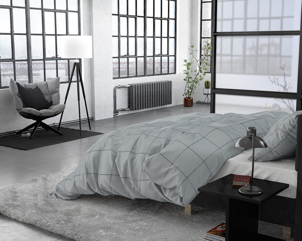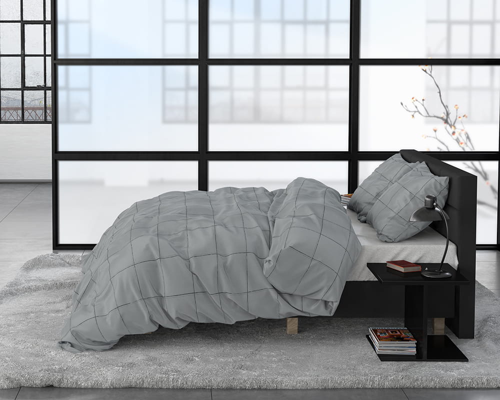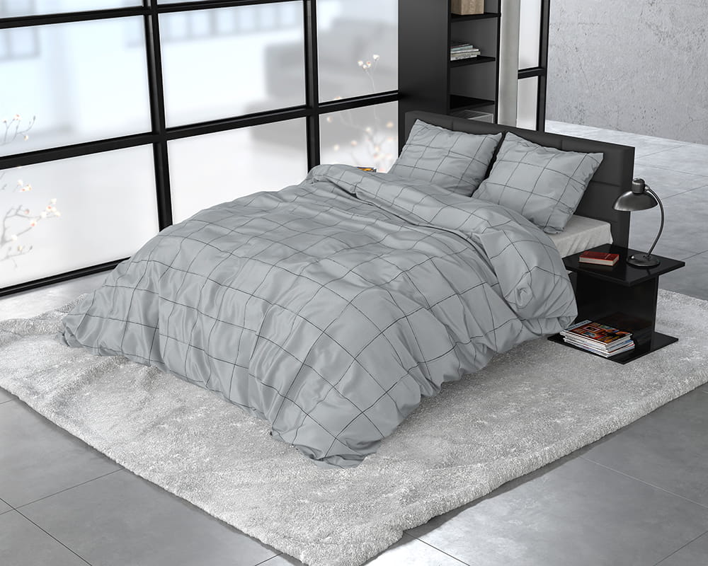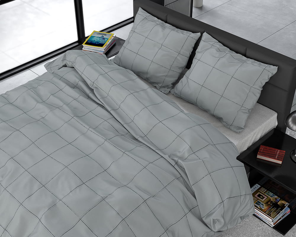 Kpl 200x220 DEEP CHECK szary bawełna satynowa