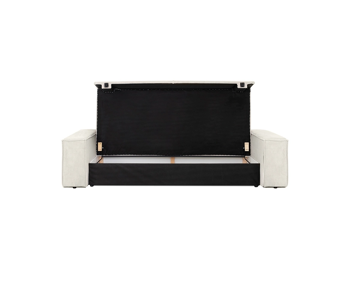 Dodatkowy komfort zapewniają poduszki, które doskonale sprawdzą się po rozłożeniu sofy do nocnego wypoczynku. Wbudowany pojemnik na pościel pozwoli Ci zaoszczędzić miejsce i zachować porządek w Twoim salonie.