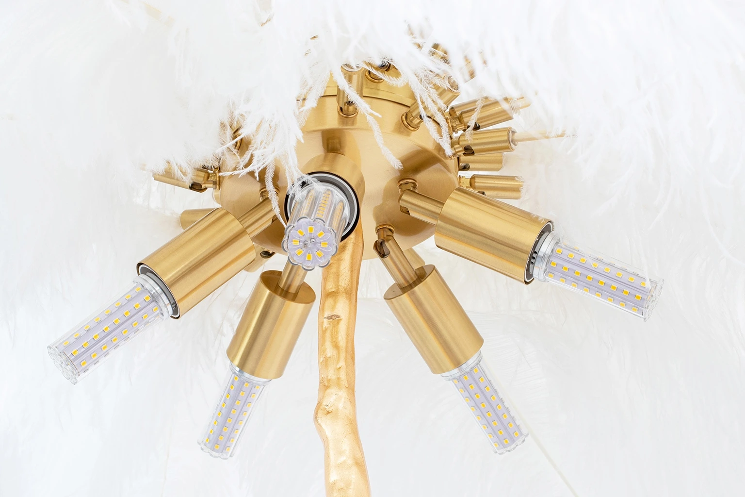 TIFFANY 175 lampa podłogowa biała mosiądz / naturalne pióra MOOSEE